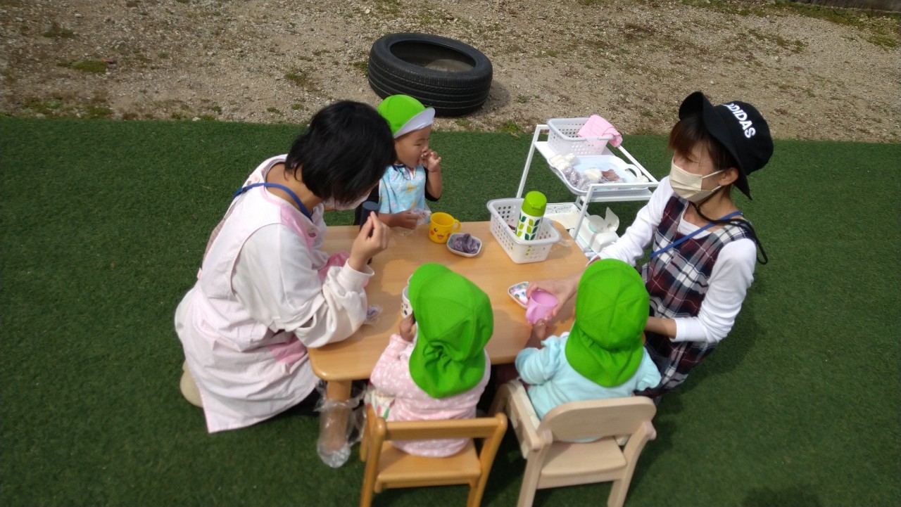 おにぎりを園庭で食べました。