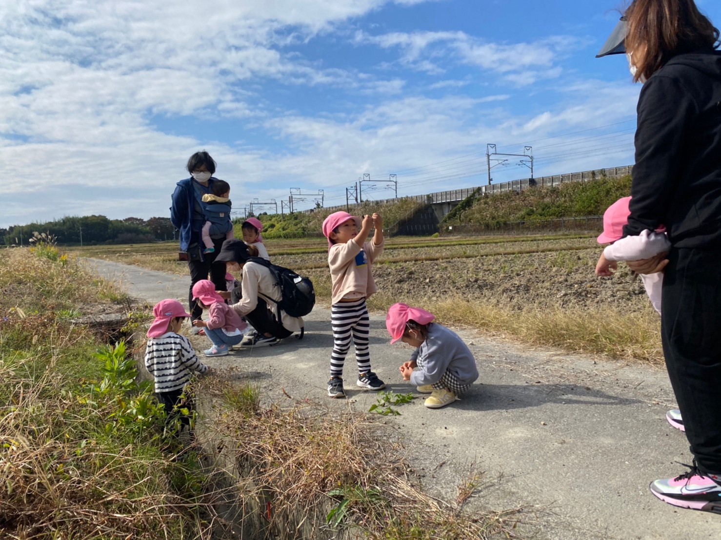 田んぼをのぞき込んだり