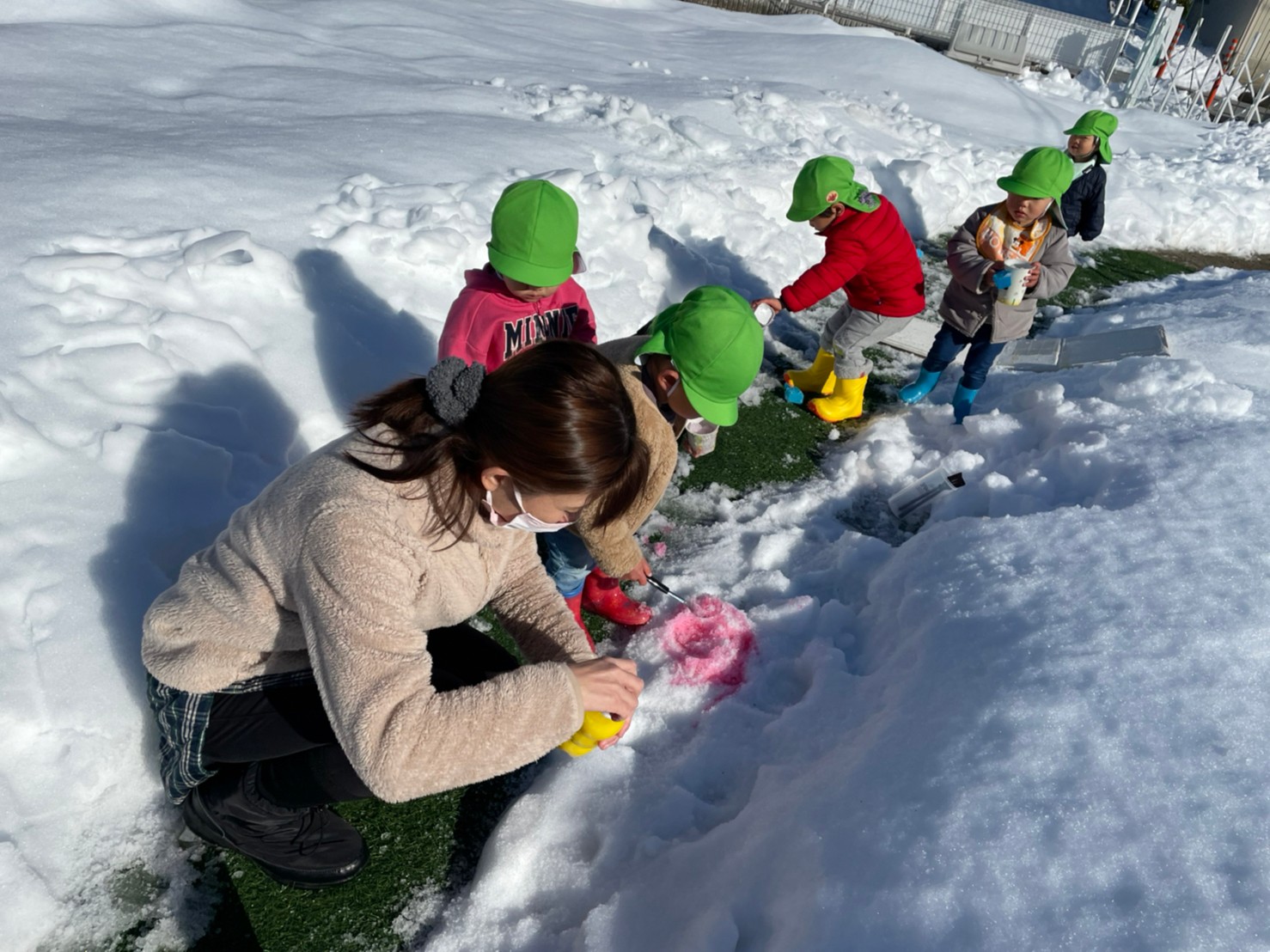 真っ白な雪に、色とりどりの水を・・・